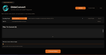 GlideConvert is a focused conversion utility, not a full nonlinear editor. It is built to help you move from source files to clean exports with as little friction as possible.